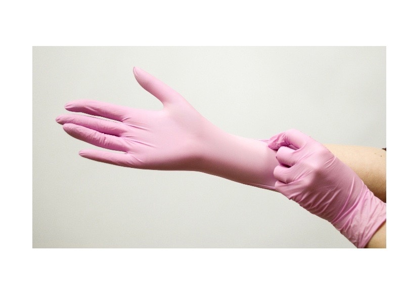 Одноразовые нитриловые перчатки розового цвета. Плотные, вес 3,5 гр, хорошо подходят для шугаринга, маникюра и в других направлениях бьюти-индустрии.