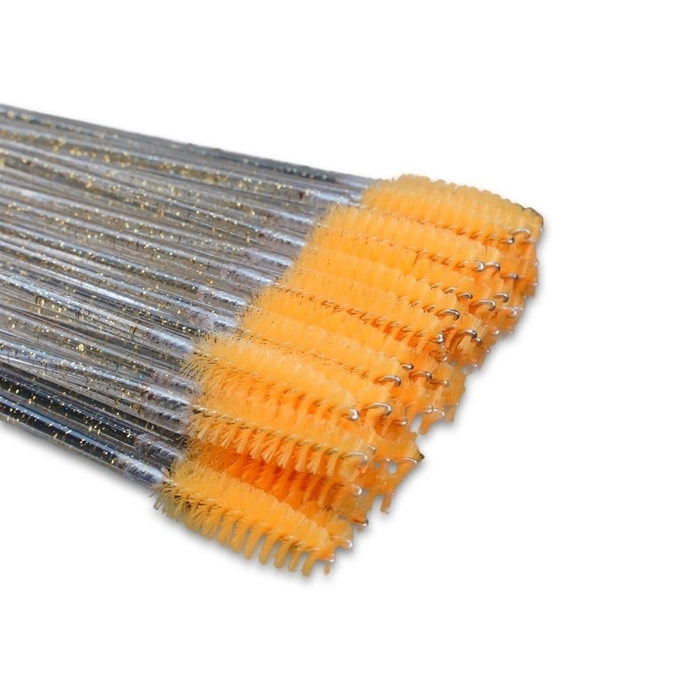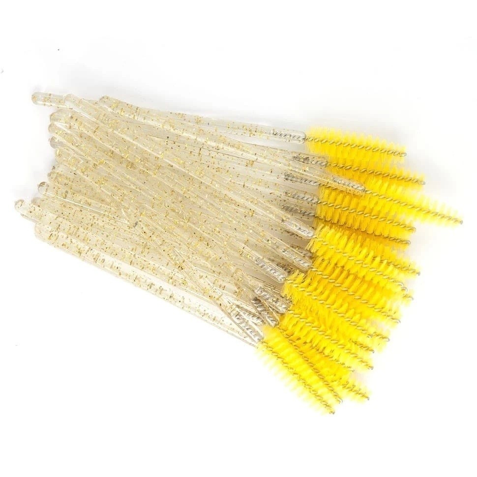 Щеточка для ресниц и бровей акриловый желтый стержень, 50шт