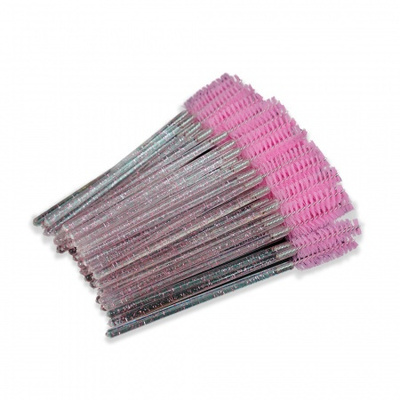 Щеточка для ресниц и бровей акриловый стержень и розовая кисть, 50шт