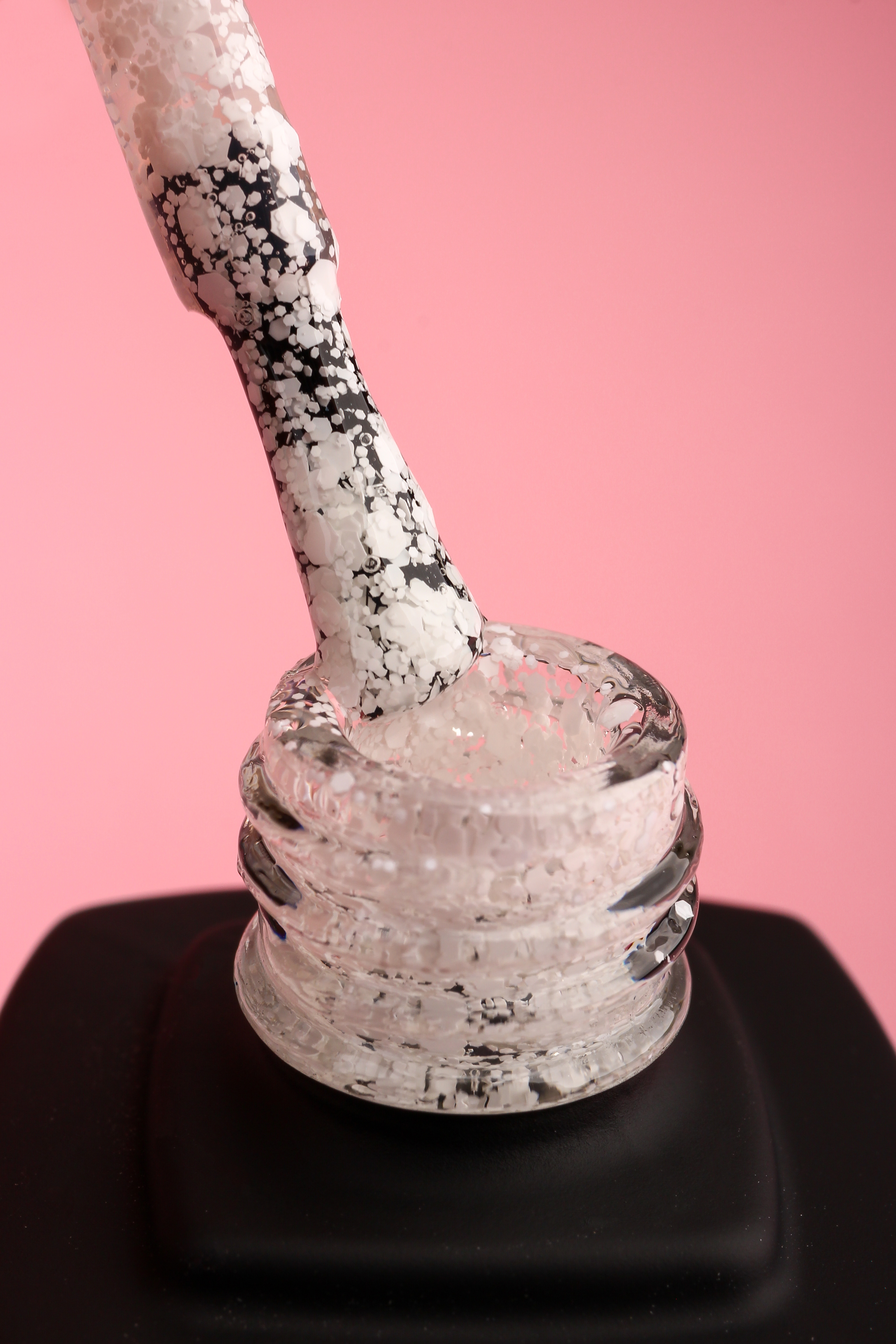 Только позитив и ничего лишнего! У этого гель-лака прозрачная база, наполненная матовыми белыми частичками разного размера. Он просто обязан быть в твоей коллекции!